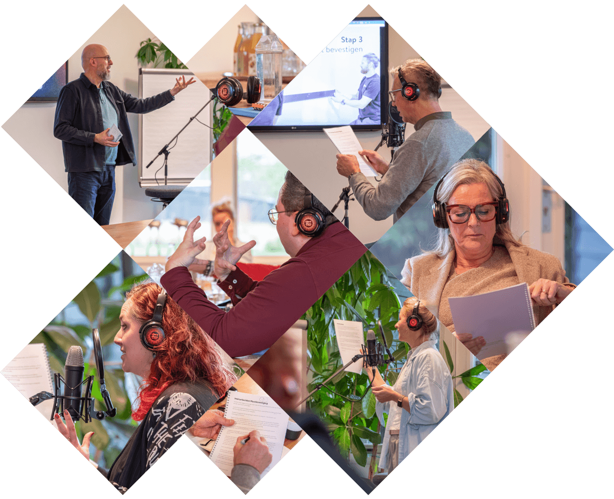In onze persoonlijke een-op-een sessies gaan we direct aan de slag met jouw ontwikkeling als voice-over en ondernemer.